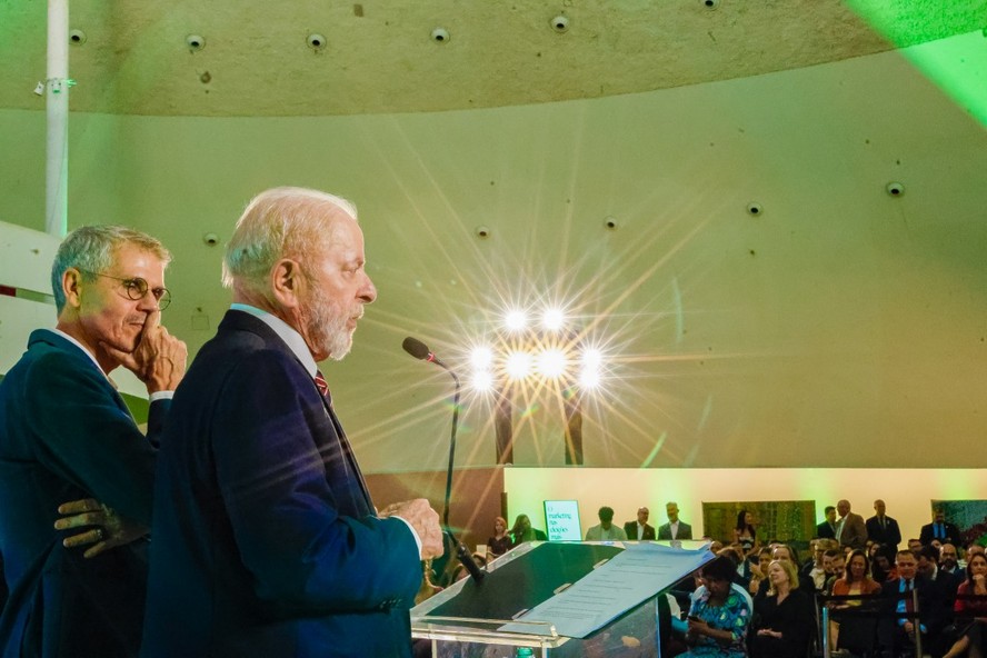 Presidente da República,Luiz Inácio Lula da Silva,durante a cerimônia de lançamento do livro ‘Brasil da Esperança - O Marketing Nas Eleições Mais Importantes do País”,do marqueteiro Sidônio Palmeira — Foto: Ricardo Stuckert