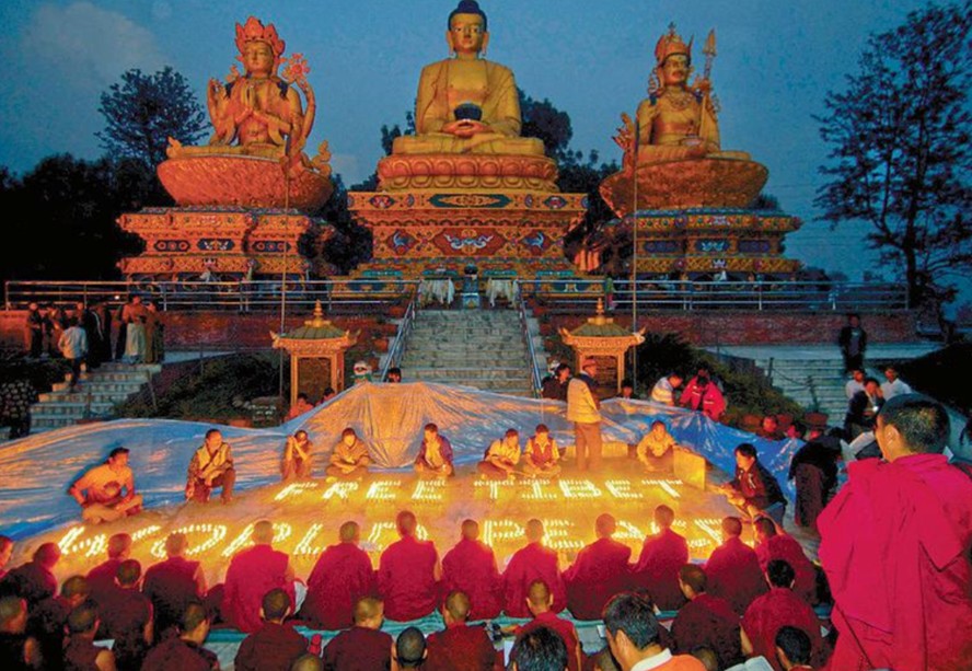 Seguindo os preceitos do Dalai Lama,militantes e monges tibetanos exilados fazem vigília contra o domínio chinês em sua nação — Foto: Prakash Mathema/AFP