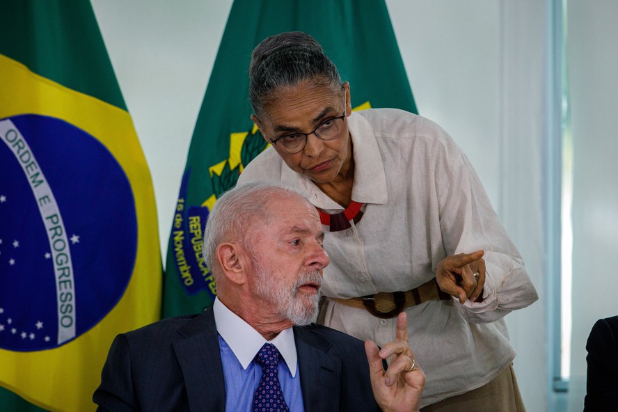 Presidente Lula e Ministra Marina Silva participam de reunião no Palácio do Planalto sobre a crise climática no Brasil — Foto: Brenno Carvalho / Agência O Globo