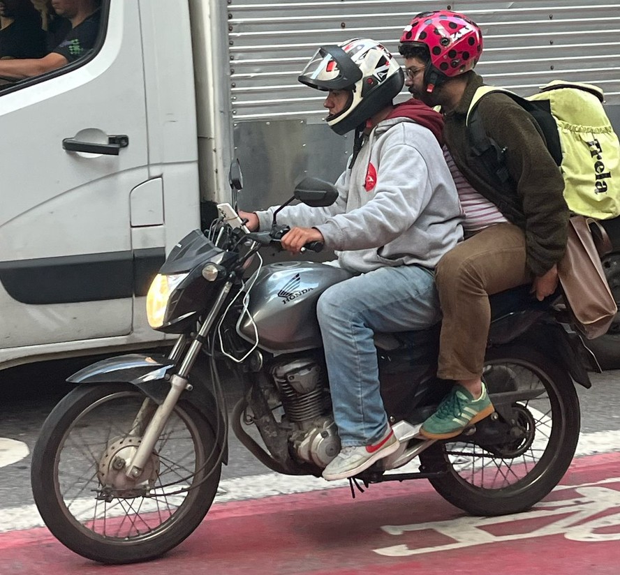 — Trava a perna em mim e não segura aí atrás não porque eu perco um pouco o balanço,e é perigoso — recomendou o segundo motociclista do dia.