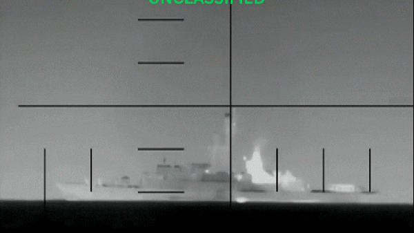 Pentágono divulgou vídeo com momento do torpedeamento de fragata da Marinha do Irã — Foto: Reprodução/ X/ Pentágono