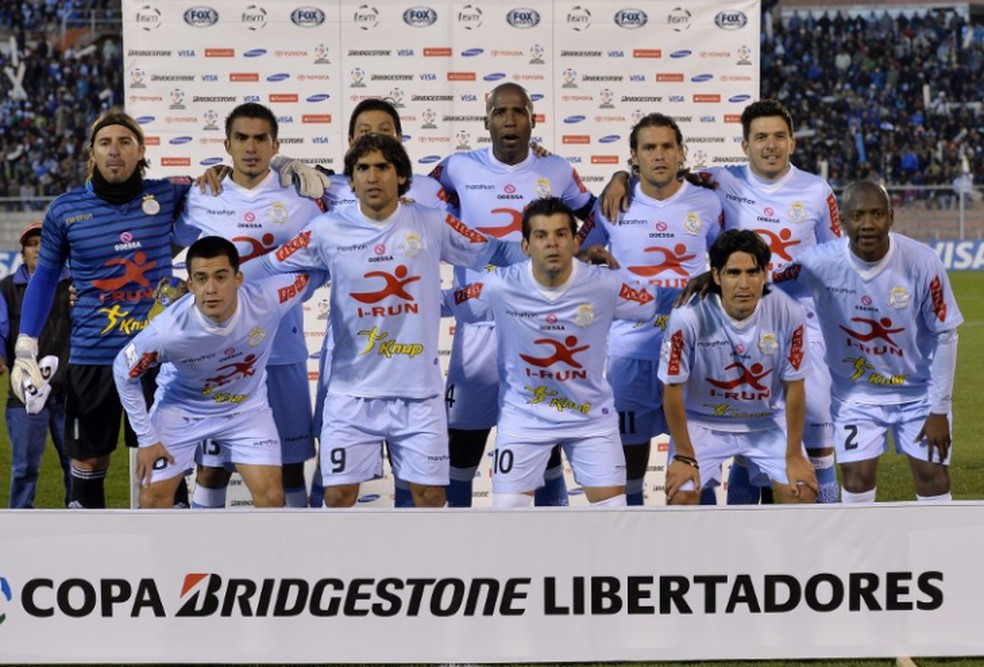 Real Garcilaso em participação na Libertadores,antes da mudança de nome,escudo e cores — Foto: Reprodução