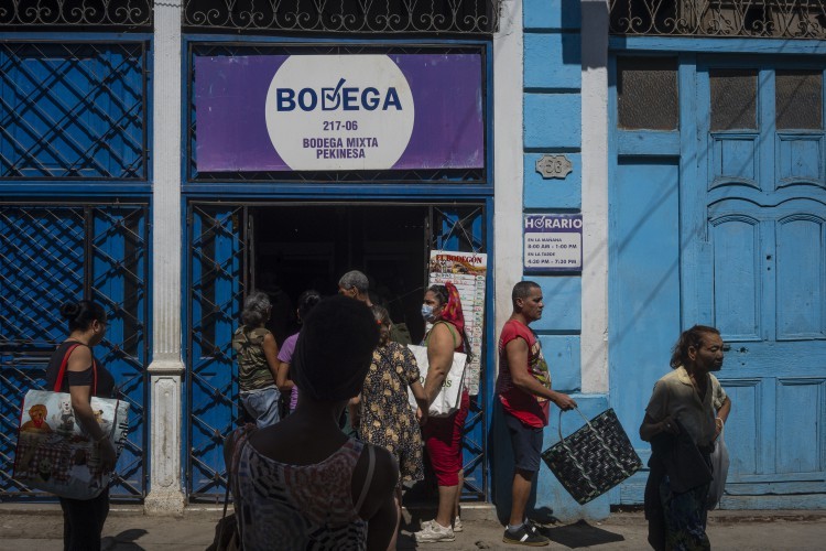 Moradores do centro de Havana percorrem as bodegas,em busca de suprimentos básicos a preços subsidiados. Foto Yan Boechat
