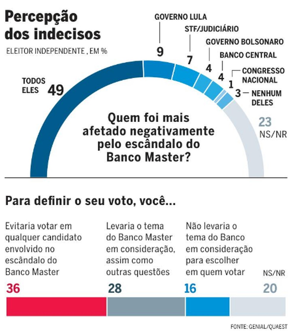 Indecisos afirmam que caso Master impacta voto e se dividem sobre campo que sofreu o maior baque