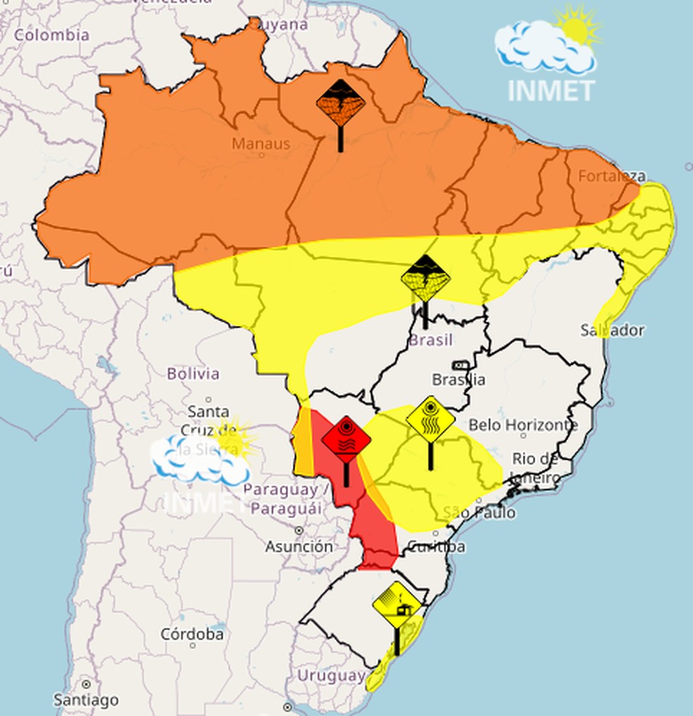 O Brasil terá uma quarta-feira marcada por forte contraste climático entre as regiões. Enquanto áreas do Norte e do Nordeste seguem sob alerta para chuvas intensas e risco de temporais,o Centro-Oeste,o Sudeste e parte do Sul enfrentam calor acima da média e baixa umidade do ar. O mapa de alertas do Instituto Nacional de Meteorologia (Inmet) também indica risco de vendavais no Sul do país.